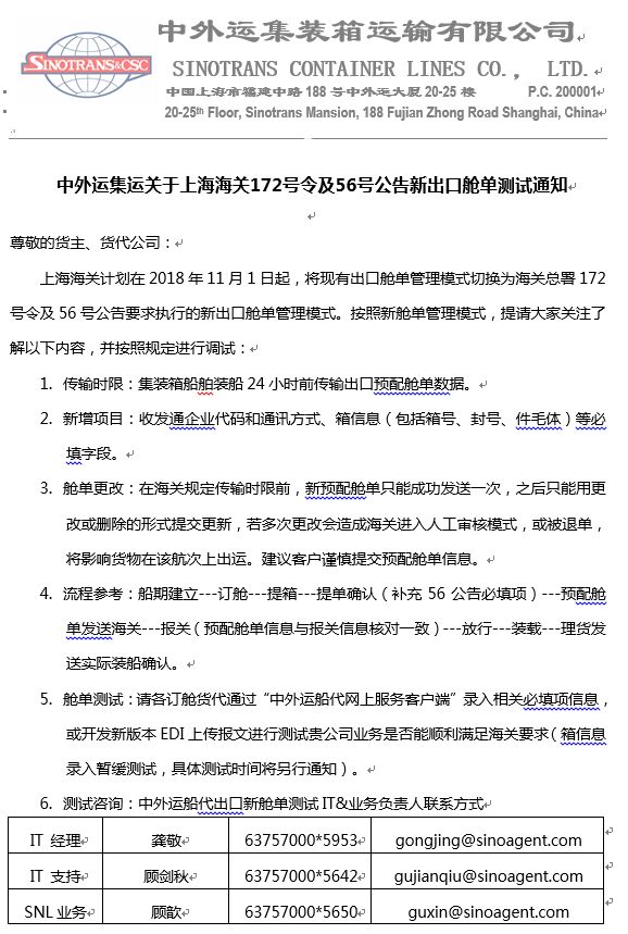 After Ningbo and other ports, recently, Shanghai port also issued a notice that it will implement a new operation method for the transmission of export manifest from October 20, 2018, setting new requirements on the transmission time limit of the pre-configured manifest, the change of the pre-configured manifest and the transmission of the pre-configured manifest.